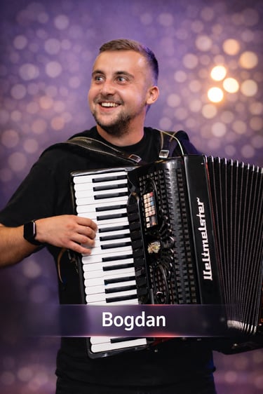 Această componență ne permite să oferim un program artistic variat și flexibil, un spectacol live cu energie, dinamism și diversitate muzicală, potrivit pentru orice eveniment. Indiferent că vorbim despre nuntă, botez, aniversare, petrecere privată sau eveniment corporate, ne adaptăm stilul și energia pentru a crea atmosfera perfectă.
