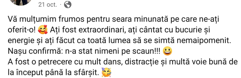 Experiențele clienților noștri spun cel mai bine povestea evenimentului